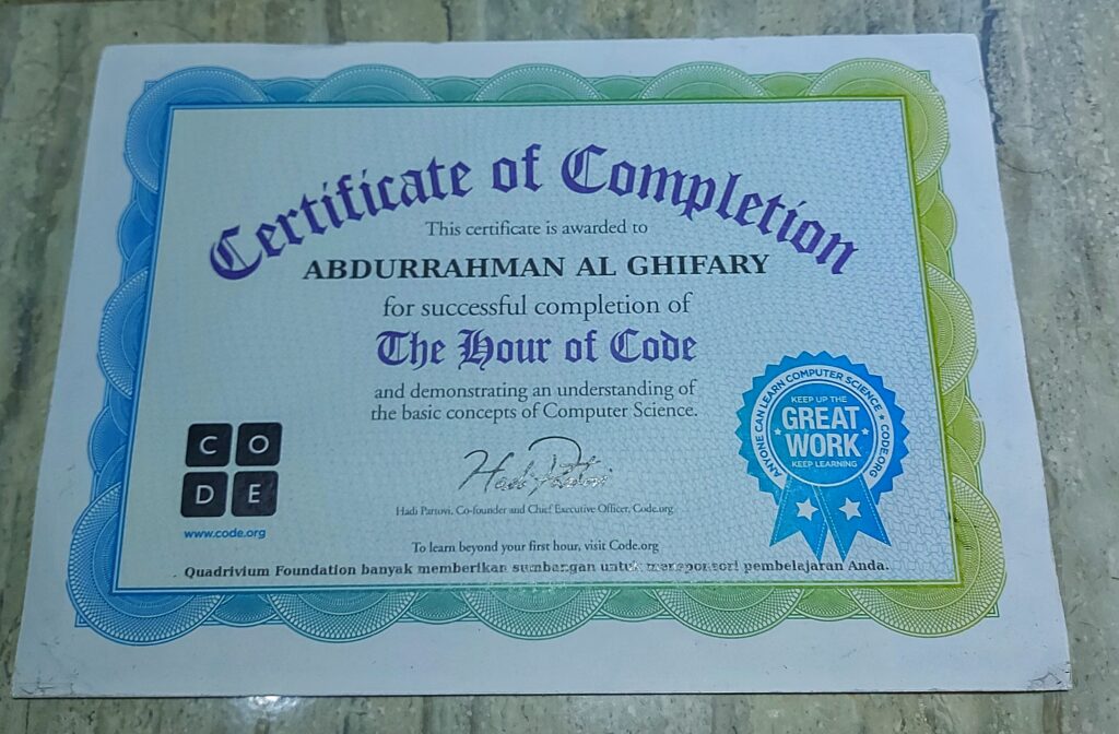 Certificates of completion “THE HOUR OF CODE”