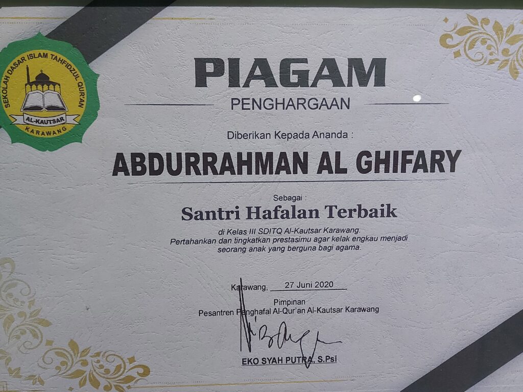 Certificates The best memorizing students