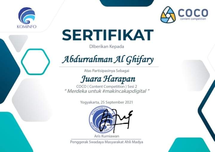 Certificates COCO (Content Competition) KOMINFO