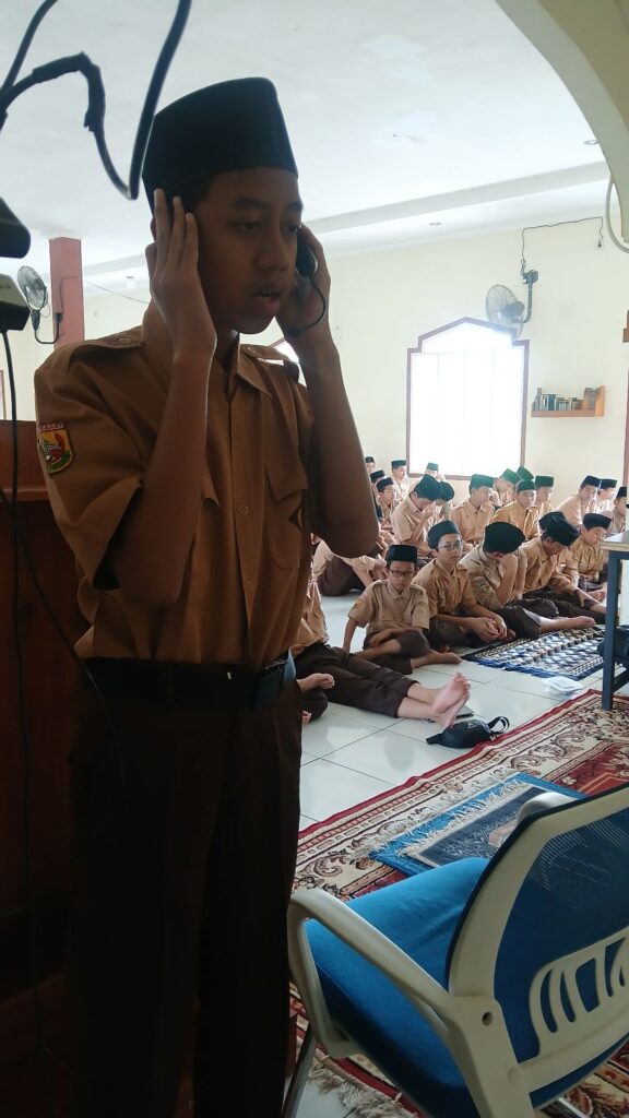 “muezzin,” namely the person whose job it is to make the call to prayer in the mosque. Azan is a call for Muslims to perform prayer, which is said before each prayer time. The muezzin usually has a good and loud voice so that the call to prayer can be heard clearly.